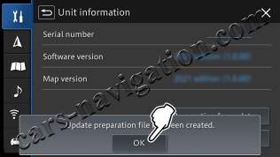 - Home - Settings - Unit information - Preparation for update - OK - OK